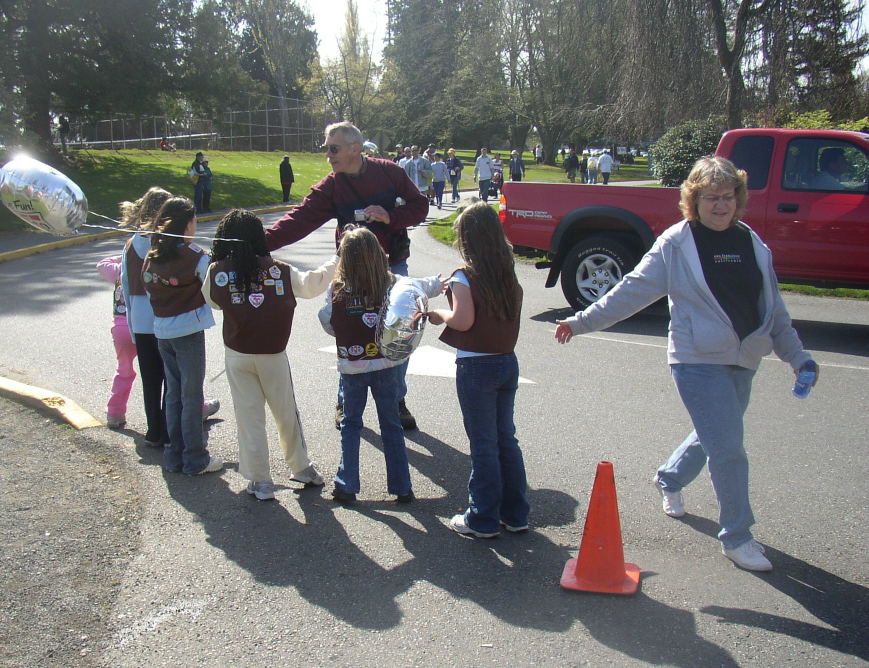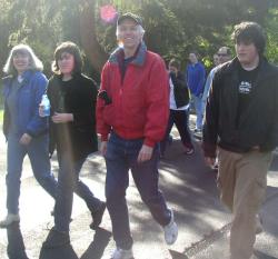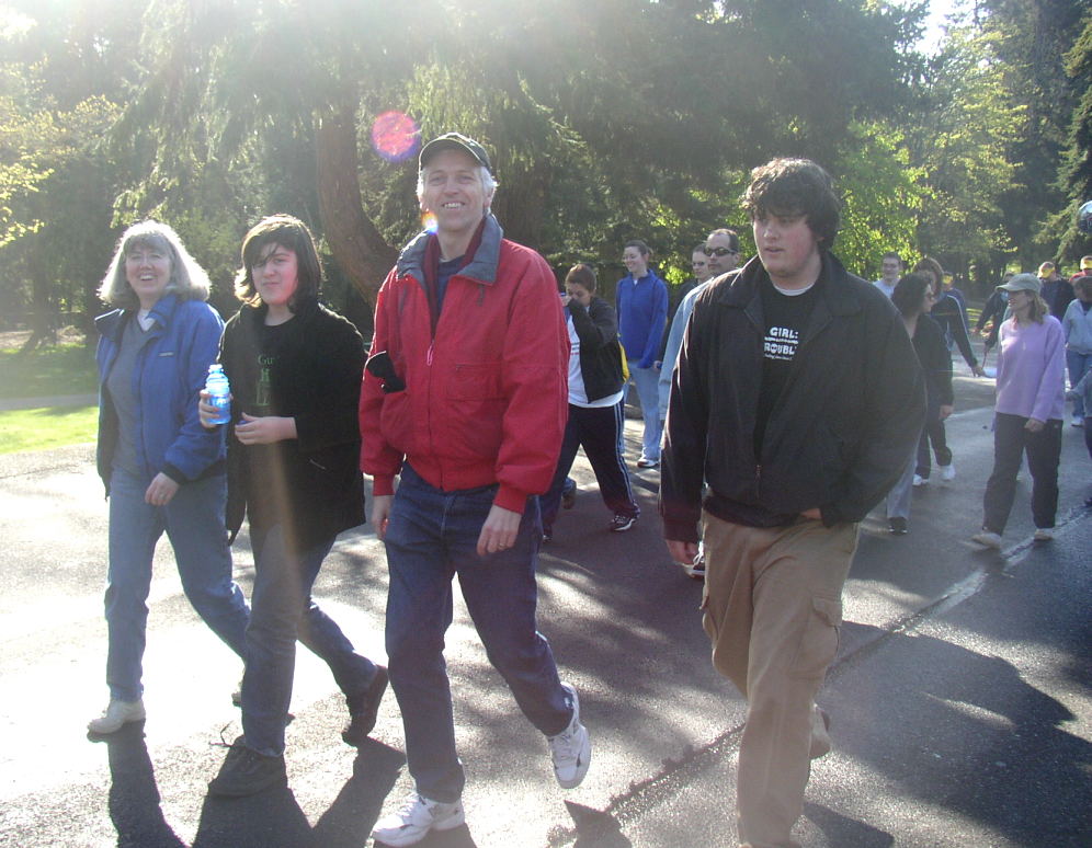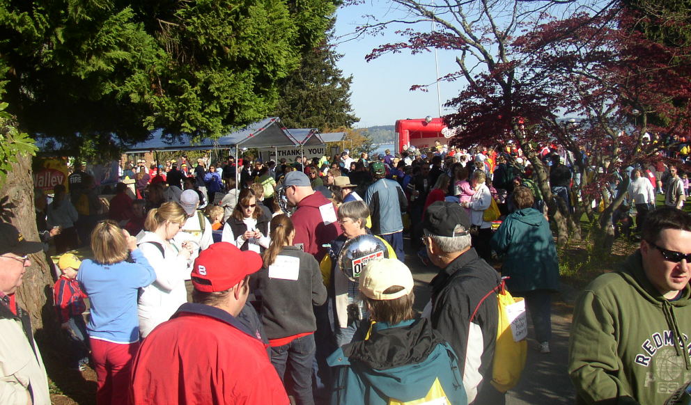 Tacoma's Point Defiance Park is a beautiful place full of fruit blossoms and majestic old trees. It was a gorgeous day, and lots of folks spent the hour before the walk registering and milling around the various displays.