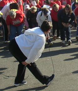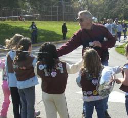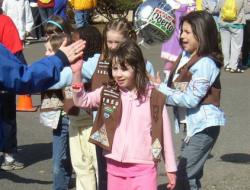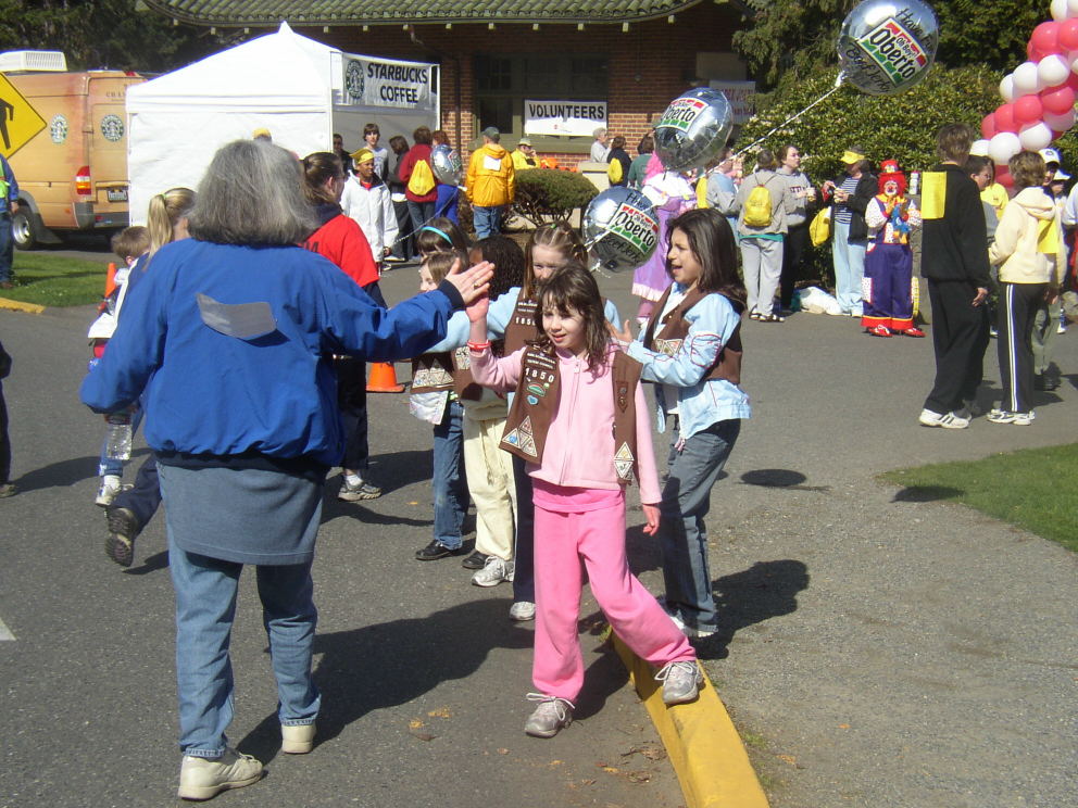 Here's a great idea, for which someone should be congratulated. At the end of the course we were greeted by a line of high-fiving Brownies! They were very enthusiastic and gave each walker a congratulatory whoop.
