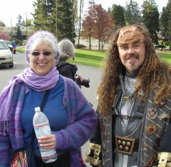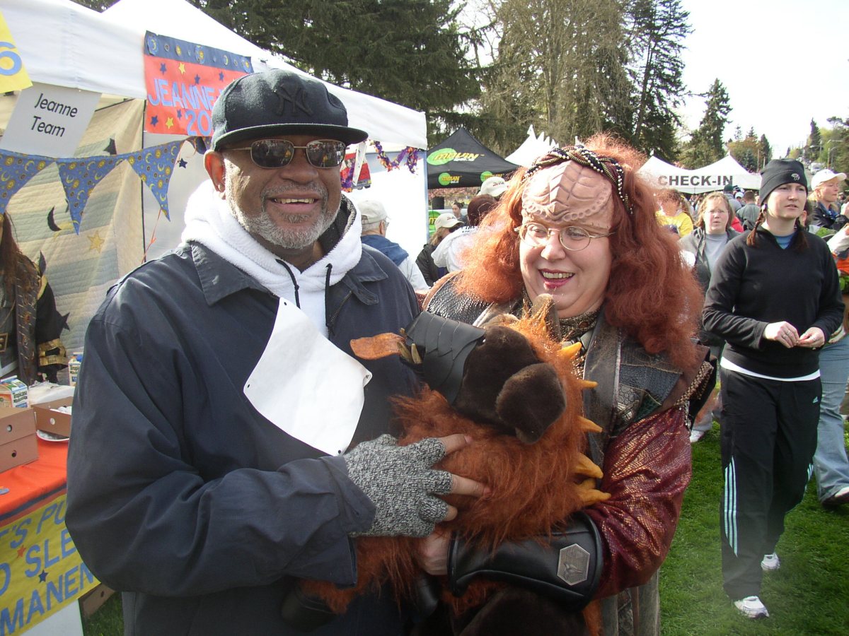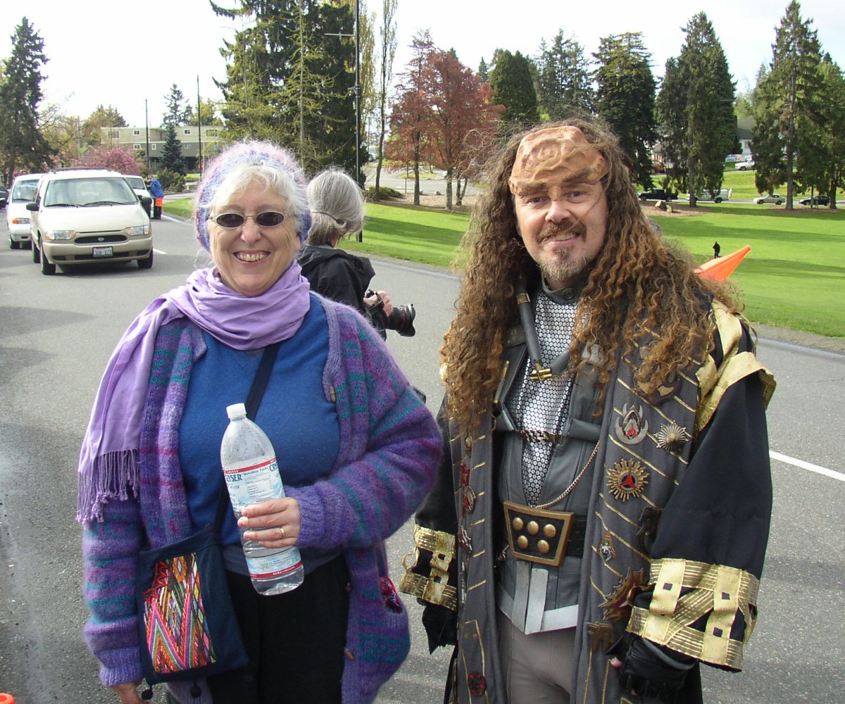 My big sis Ruth showed up after the family photo and walked with us. Here she poses with one of those famously kind and friendly Klingons that assis the walkers every year.