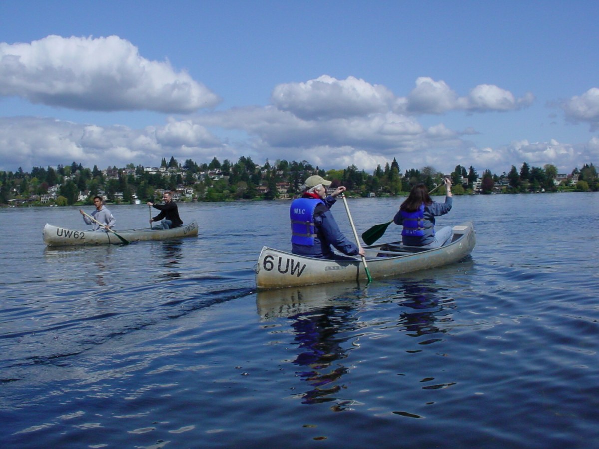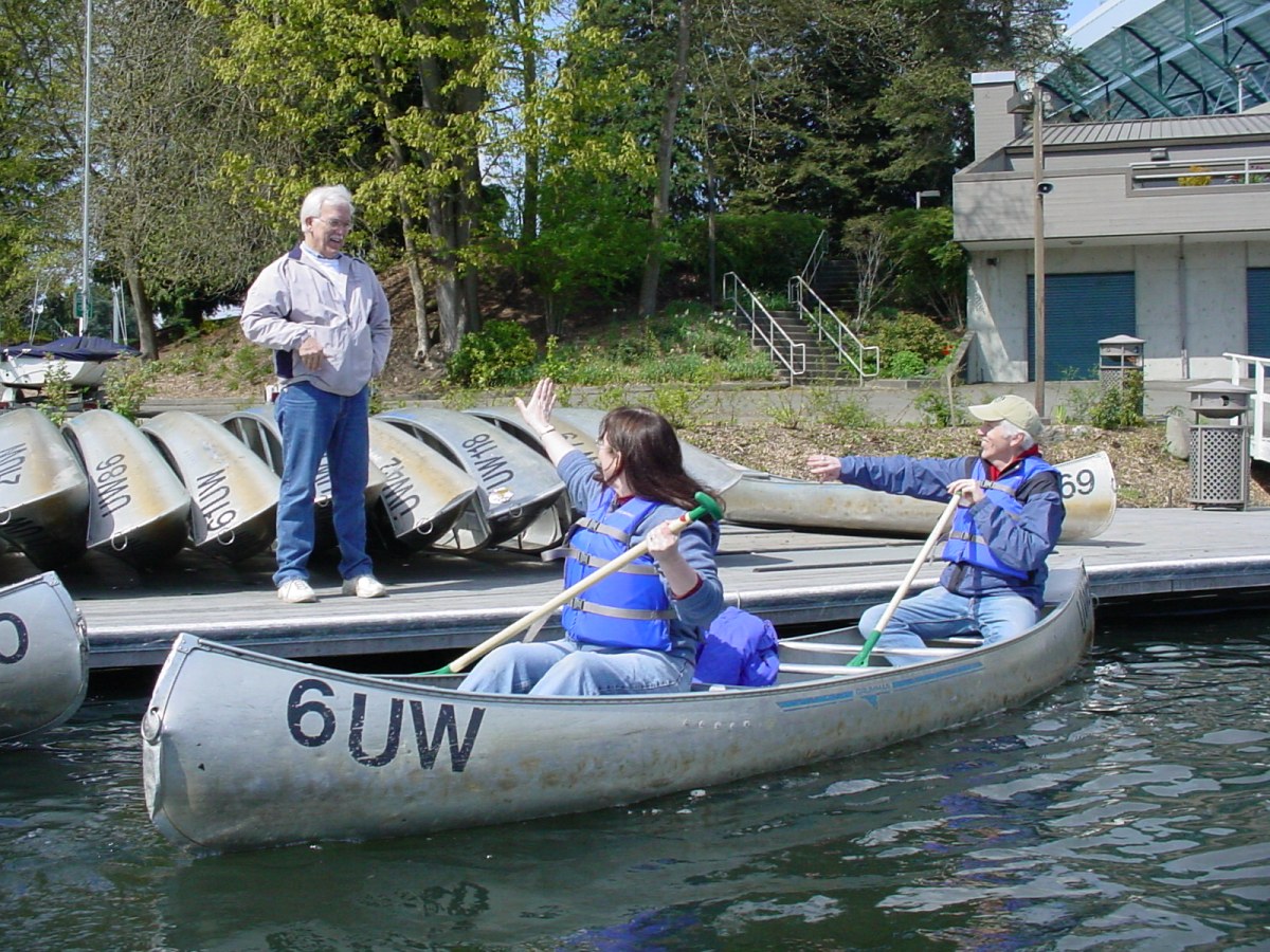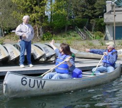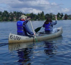 So why is there a photo of us in a canoe? Well, I must admit with no small amount of self-recrimination that I forgot to bring my camera to Seattle! But after the walk we met up with our friends George and Bonita for a canoe outing on Lake Washington. Bonita took this picture of us with Paul at the dockside. |