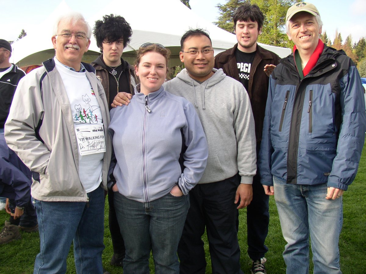 We are in Tacoma's beautiful Point Defiance Park for the 2007 MS Walk. This is the first time that my big brother Paul and his daughter Katy have joined us in tacoma! From left, that's Paul, my son Sam, Katy, Katy's friend Mel, my son Isaac, and me (Tim.) Weather was perfect, and the crowd was huge! It sure seemed like twice as many folks as last year, although I have no confirmation of that.